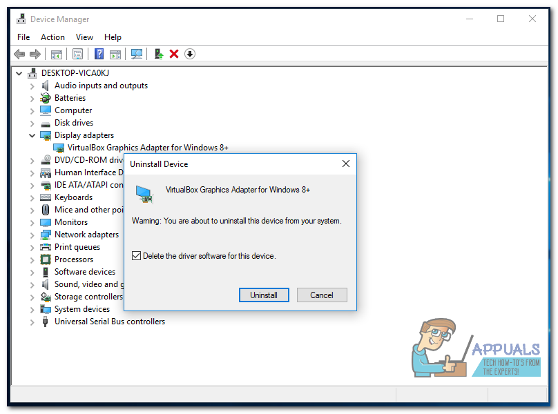 - Device Manager, expand the Display adapters, right-click on your graphics adapter under this category and click Uninstall and check Delete the driver software for this device, and then OK to remove the drivers.