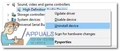 - In the Device Manager, expand the Sound, video and game controllers, right-click on any 3rd party audio device (e.g. Conexant SmartAudio HD) you see under this category and right-click and click Uninstall Device.