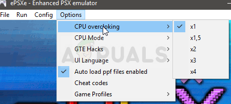 - The CPU overclock option is set to more than x1 for users who haven’t overclocked their CPUs. It’s weird that the program would automatically set this option to something other than x1 but it causes ePSXe to crash and it should be changed.