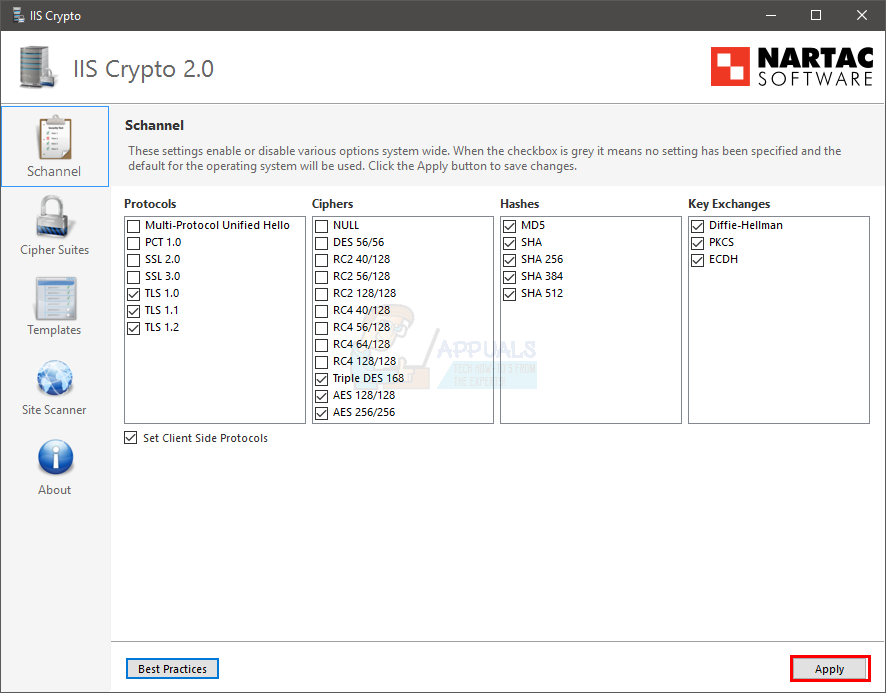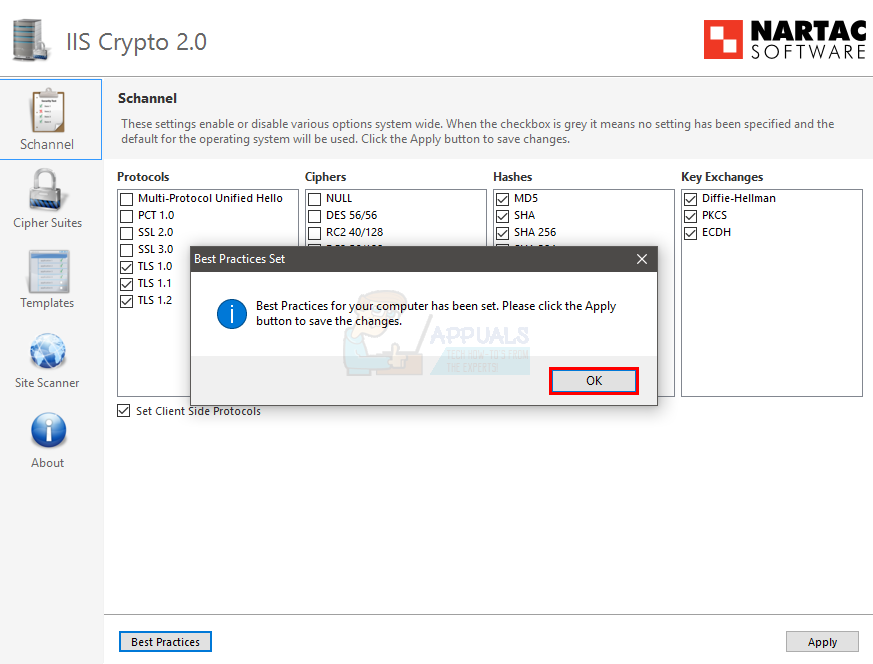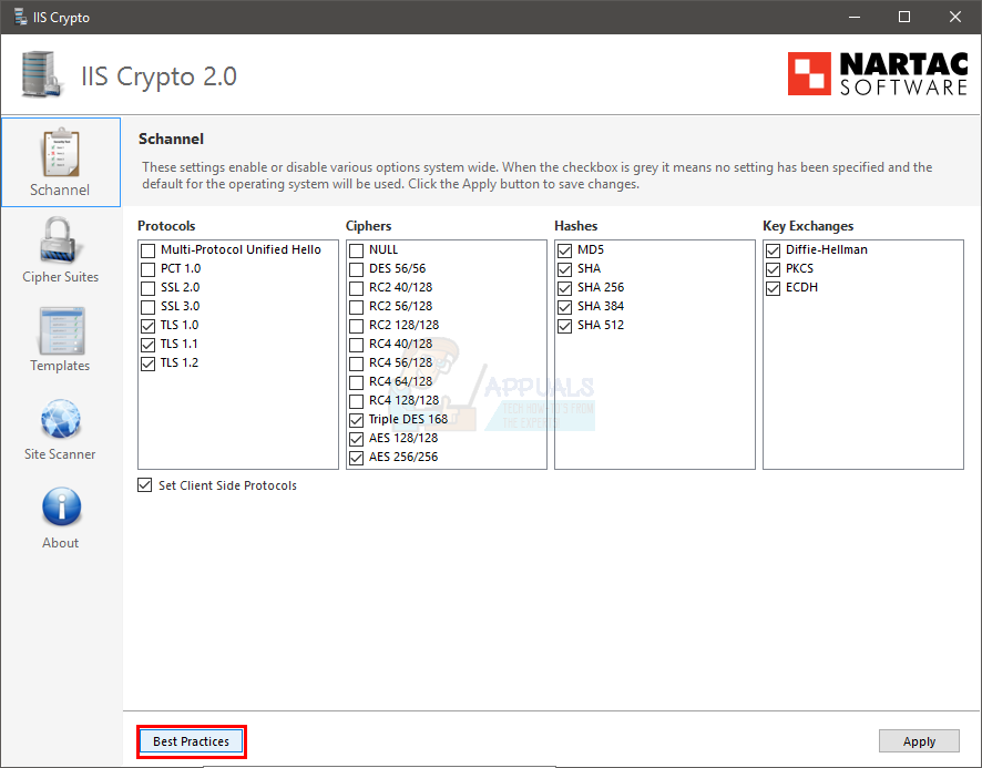 IIS Crypto 2 comes with the Best Practices option that helps in selecting the suitable cypher suites. When you select this option, it will automatically include or exclude the cyphers depending on the requirements of HTTP2. Here are the steps for using the IIS Crypto 2