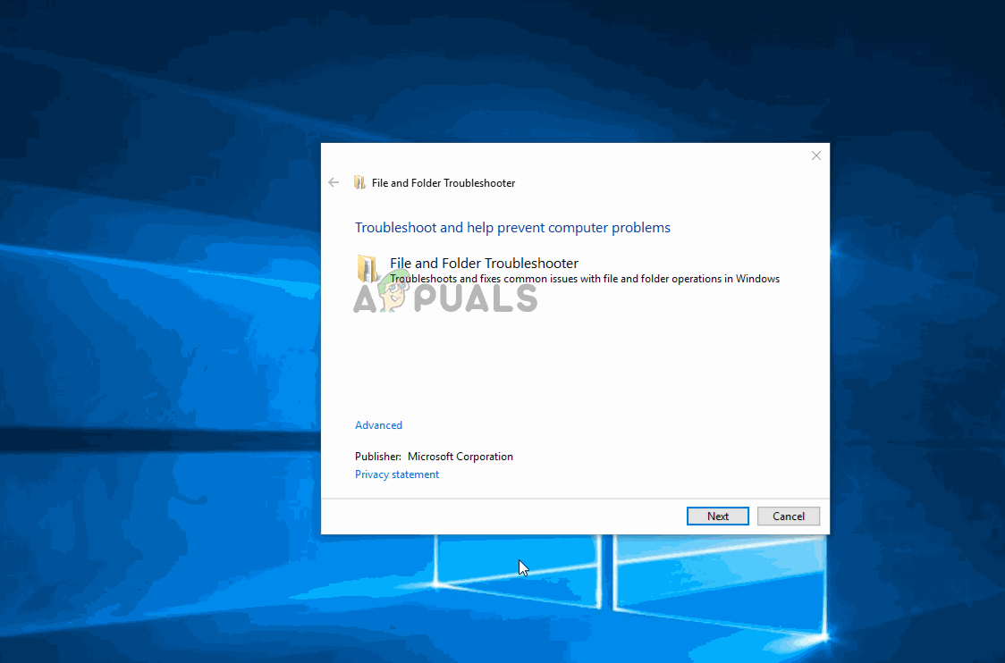 - File or Folder corruption – As it turns out, the error message can also appear if your system is struggling with corruption inside some of the files or folders that are being used during file sharing (over the network). Some users have managed to resolve this problem by running the Windows file and folder fix-it.