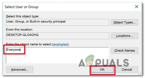 Changing the default owner - Then, from the Select User or Group window, type Everyone under Enter the object name to select and hit Ok to save the changes.