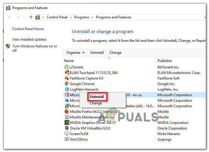 Several users that have been struggling to resolve the issue for themselves have reported that they were able to resolve the issue by accessing the Programs and Files menu and uninstalling every version (older or newer) of the same software.