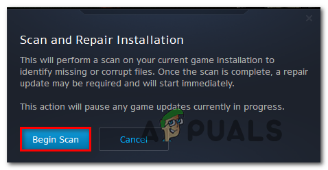 Running a Scan & Repair on Destiny 2 - At the next confirmation prompt, click on Begin Scan and wait for the operation to complete.