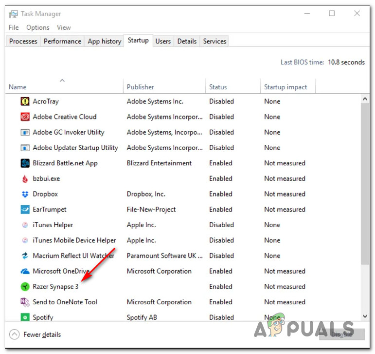 - Conflict with Razer Synapse conflict – As it turns out, this problem can also occur due to a conflict between your local installation of Heroes of the Storm and the Razer Synapse software. In this case, you can fix the problem by keeping Razer Synapse closed while running the game, by disabling Razer Synapse from starting at every Windows startup, or by uninstalling the tool altogether from your computer.