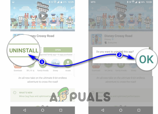 - Tap on Uninstall on the affected application’s Google Play Store page.