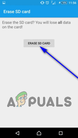 - Confirm the action on the next screen by tapping on Erase SD Card (or something along those lines).