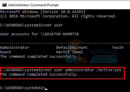 Run net user administrator /active:yes in Command Prompt