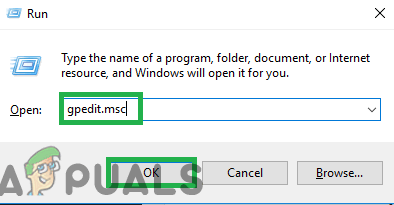- Press Windows key + R to open up a Run dialog box. Then, type “gpedit.msc” and press Enter to open up the Local Group Policy Editor. If you’re prompted by the UAC (User Account Control), click Yes to grant administrative privileges.