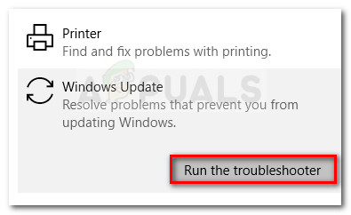 Before you try anything else, let’s see if your Windows version is not capable of resolving the issue automatically. Some users have managed to resolve the issue by running the Windows Update Troubleshooter – a built-in Windows 10 utility that runs various repair strategies created to tackle the most common problems related to WU (Windows Update).