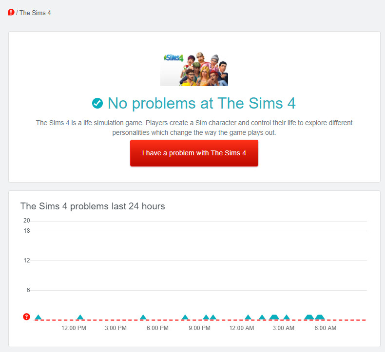 First things first, start by checking if other users in your area are reporting the same kind of issue by visiting the Sims 4 page on DownDetector.