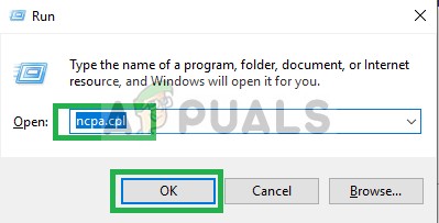 - Press Windows + R and type in “ncpa.cpl“