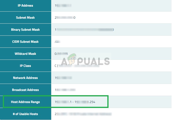 5. Now the calculator will take a moment and the results will be shown just below it. In the results look for the “Host Address Range”