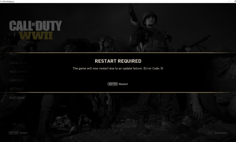 Fix: Error Code 5 ‘Restart Required’ in Call of Duty World War 2