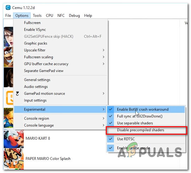 - PreCompiled Shaders are enabled in CEMU – With Nvidia GPUs, the most common issue that will trigger this particular error is a case where PreCompiled shaders are enabled for the game or for the entire application which will end up crashing most emulation attempts. In this case, you can fix the issue by disabling the precompiled shaders feature on both the game profile settings and the settings menu of CEMU.
