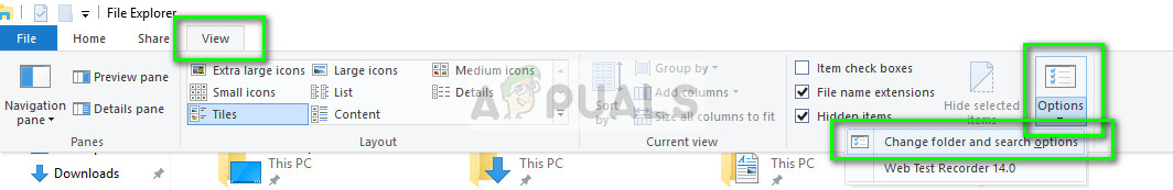 - Press Windows + E to open Windows Explorer. Click View and select Options > Change folder and search options. You perform similar steps if you are using an older version of the operating system.