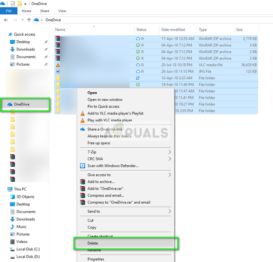 - Now navigate to your File Explorer and delete all your OneDrive files.