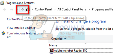 Open Programs and Features - Now click on the “Up arrow” present near the address bar of the window.