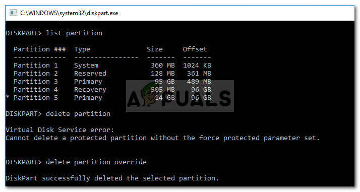 - Afterward, to delete the partition, type in ‘delete partition override’.