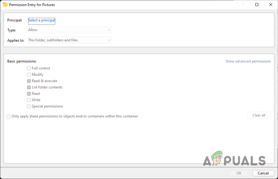 - Then, click on the Select a principal option provided. This will open up a similar window as in step number 6. Repeat step 6 and 7 at this point again.