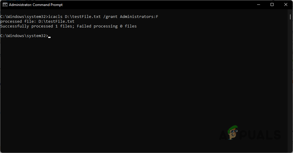 Using the command prompt window, we are going to be taking ownership of the file/folder and then assigning administrator permissions to ourselves over the file/folder. This is done through the takeown and icacls commands. Follow the instructions given down below to do this: