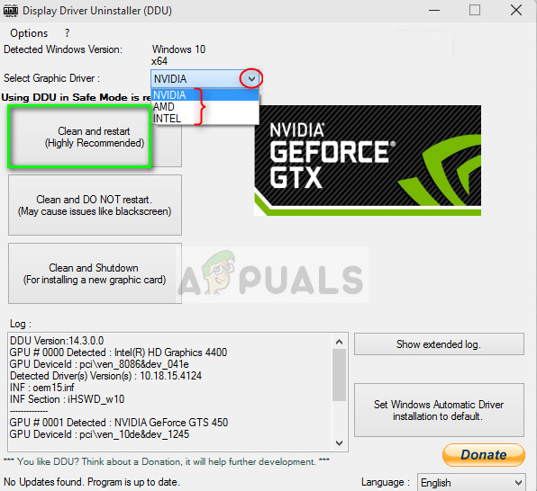 - After launching the application, select the first option “Clean and restart”. The application will then automatically uninstall the installed drivers and restart your computer accordingly.