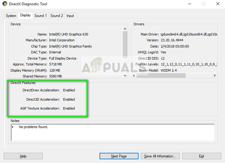 - Click on the Display tab and make sure that all the DirectX features are enabled especially Direct3D acceleration.