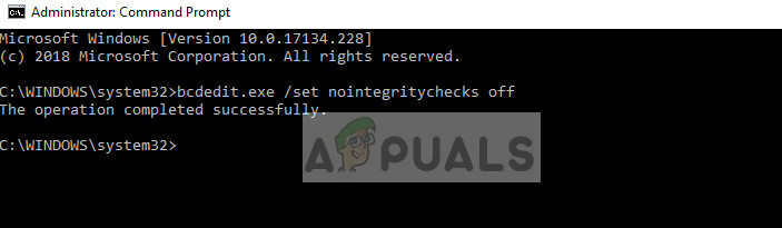 bcdedit.exe /set nointegritychecks on