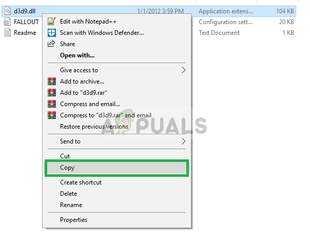 - Once downloaded and extracted, open the folder and copy the “D3D9.dll” file to the Fallout 3 installation folder and replace the one already in there.