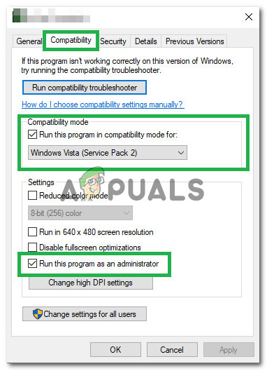 The game was centered to run around Windows Vista’s architecture and therefore has many incompatibilities with the Windows 10’s Architecture. Due to which, the game faces many hurdles whilst launching and often crashes. Fortunately, Windows 10 allows its users to run a program in compatibility mode for the previous operating systems. For that: