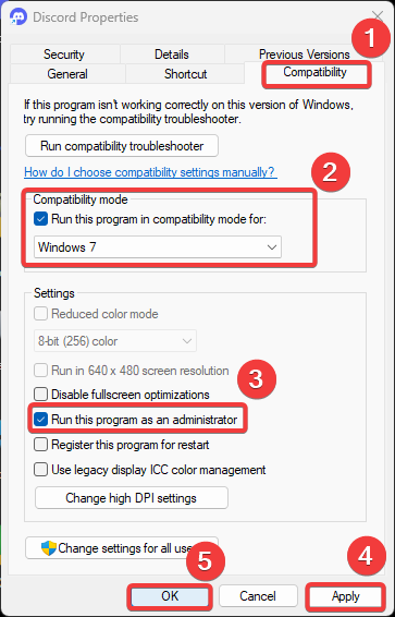 - Select Properties and navigate to Compatibility from the top.