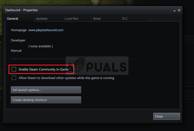 - Right-click the game’s entry in the library and choose the Properties option from the context menu which will appear. Stay in the General tab in the Properties window and clear the box next to the “Enable the Steam Overlay while in-game” entry.