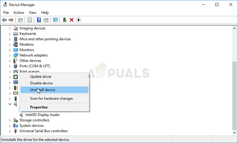 - Right-click on each game controller you locate on the list and choose the Uninstall device option from the context menu. Make sure you repeat the same process for all gamepad entries on the list.