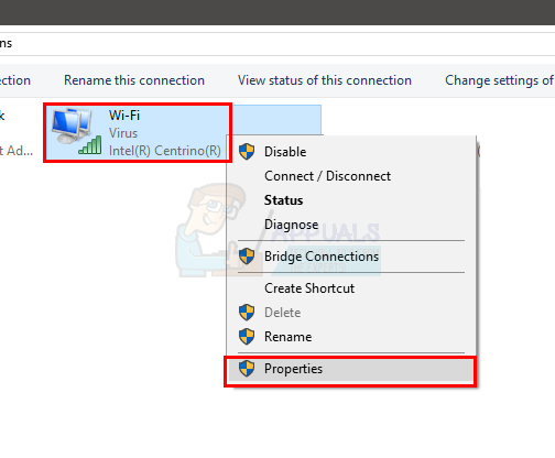 - Locate and right click your network connection. Select Properties