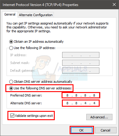 - Type 8.8.4.4 in the Alternate DNS server