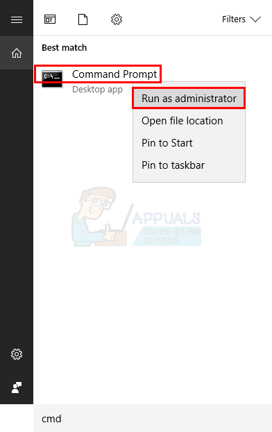 - Right click command prompt and select run as administrator from the search results