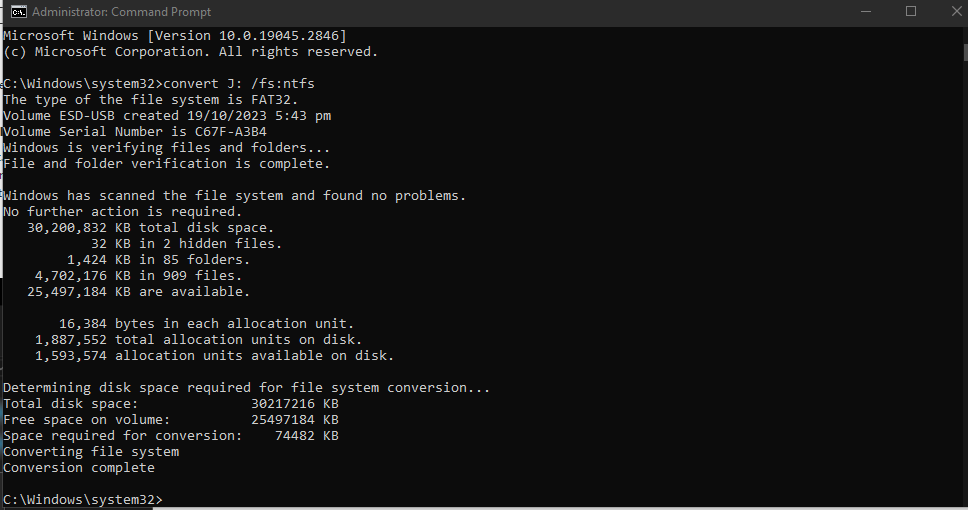 Example: convert J: /fs:ntfs