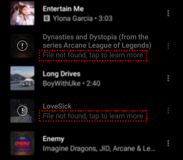 The “File not found, tap to learn more” error in YouTube Music appears when the app tries to access a downloaded song that is no longer stored in its local cache or has been removed from YouTube’s servers. This often happens even though the track still appears in your library or playlist, creating the false impression that it’s available.
