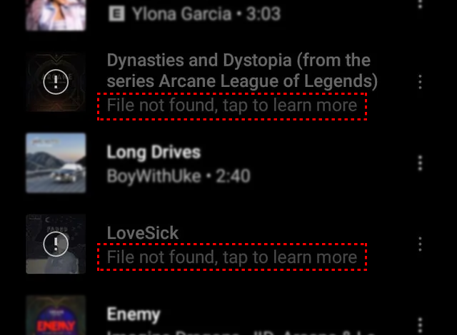 The “File not found, tap to learn more” error in YouTube Music appears when the app tries to access a downloaded song that is no longer stored in its local cache or has been removed from YouTube’s servers. This often happens even though the track still appears in your library or playlist, creating the false impression that it’s available.