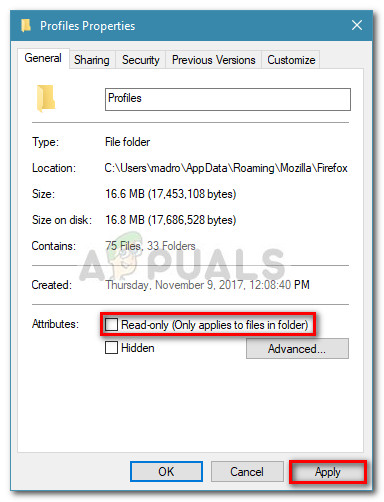 - If you found that the Read-only attribute was checked and you modified it go ahead reboot your computer. At the next startup, start using Firefox again and monitor it for any signs of unresponsiveness.