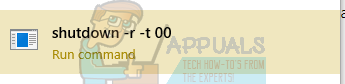 - Now press Windows + S and type “shutdown –r –t 00” in the dialogue box and press Enter. This will shut down your computer so save all your work before executing this command.