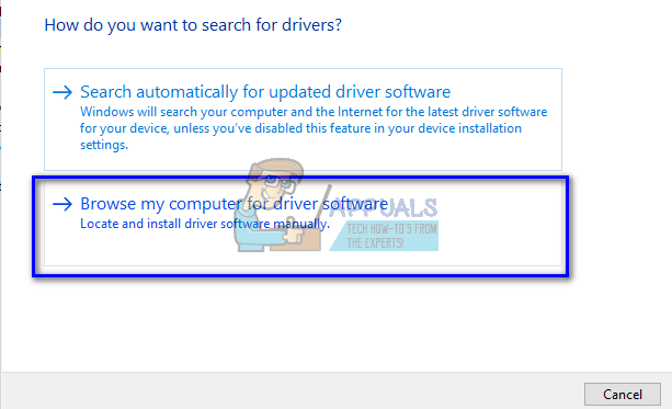 - Now select the second option “Browse my computer for driver software”. Navigate to the driver you downloaded and install it accordingly.