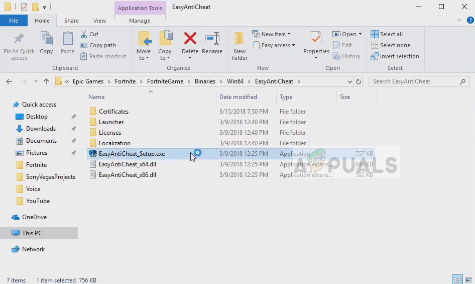 Fortnite usually comes prepacked with the anti-cheat system it needs for its functionality. However, there might be cases where the system doesn’t get installed by default and you have to manually navigate to the game directory and install it. Make sure that you are logged in as an administrator and if the game directory isn’t the default one, you should navigate there and follow the instructions.