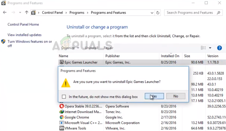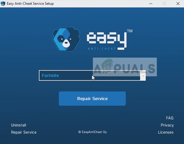 If installing the anti-cheat system doesn’t work, we can go ahead and try to reinstall Fortnite properly. There are numerous cases where after a bad potential update or after transferring game files, some of them might get corrupt which may be the reason why the launcher prompts an error message whenever you try to run it.