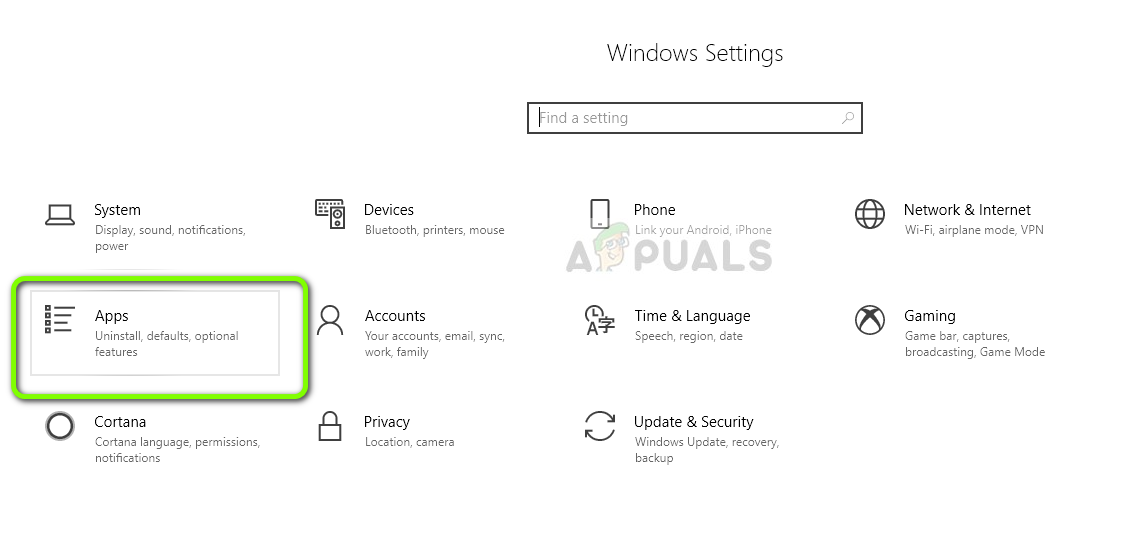 - Press Windows + I to launch the Settings application and navigate to the subheading of Apps.
