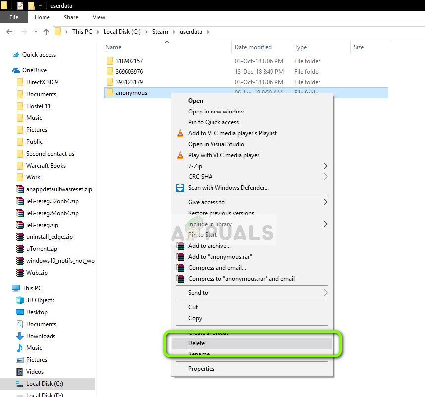 Another remedy is to delete some of the Steam files which are specific and then try launching the GeForce experience. Steam is known to conflict with GeForce experience since both are applications which directly interact with the games you play. We will be deleting some of the User Data which are temporary files used for storing configurations of the application.