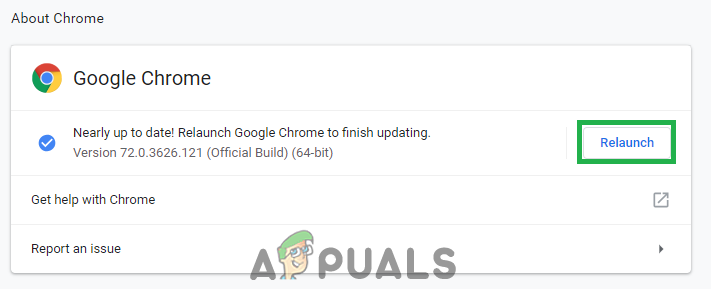 Clicking on the “Relaunch” option. - Now the Chrome application will automatically be updated and restarted, check to see if the issue persists.