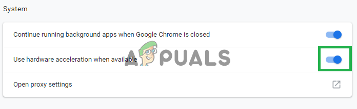 Enabling the “Hardware Acceleration”. - Now restart the application and check to see if the problem persists.