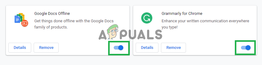 If you are using any extensions on the browser it is possible that they might be increasing the memory draw for the browser because all extensions require additional resources to function. Therefore, in this step, we will be disabling the extensions in order to make sure that they are not causing the massive memory draw. For that: