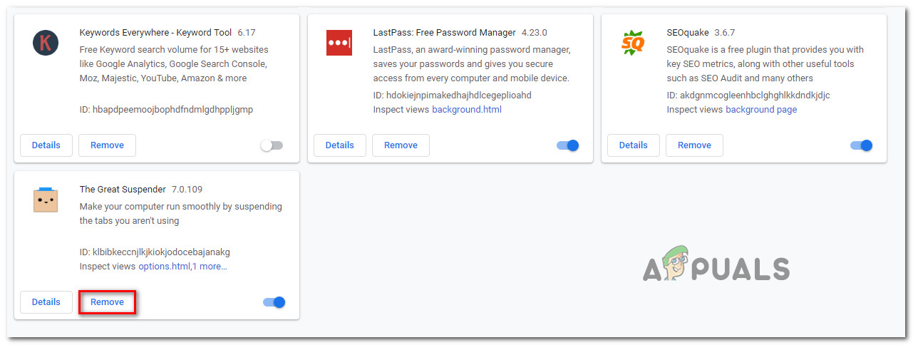If you’re in a similar situation, follow the steps below to check your extension tab and uninstall the Great Suspender extension if applicable: